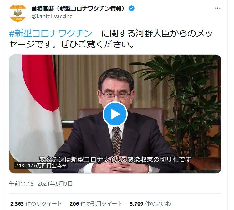 首相官邸が2021年6月9日、若い人々への新型コロナワクチン接種を推進する動画をツイッターで紹介しました。官邸のHPにはコロナ・ワクチン関連の動画が多数ありますので、「ワシはそうは言ってない」等のファクトチェックにご活用くださいませ。6月9日の動画は河野太郎・ワクチン接種担当大臣(当時)によるもの。その文字起こし(というか、キチンとキャプションが河野氏の発言通りなのでそれを私が打ちなおしただけ)をどうぞ。