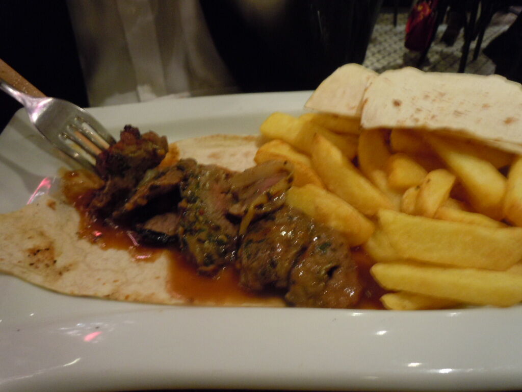 「ライムを追加で頼めばそれっぽくなるんじゃないかな」と頼み、ライムを絞ります。しかしライムが固すぎて汁が出ない。なんとか全身全霊を込めて絞ったのですが、やはりマズい。キュウリは種が育ち過ぎて肥大化している。ちょっと、この羊飼いのサラダをまずくする料理人って誰だよ。女将を呼べ! 興味が出てきた! という状態になります。というわけで、おいしかった羊飼いサラダを紹介し、この店のものを続けます。